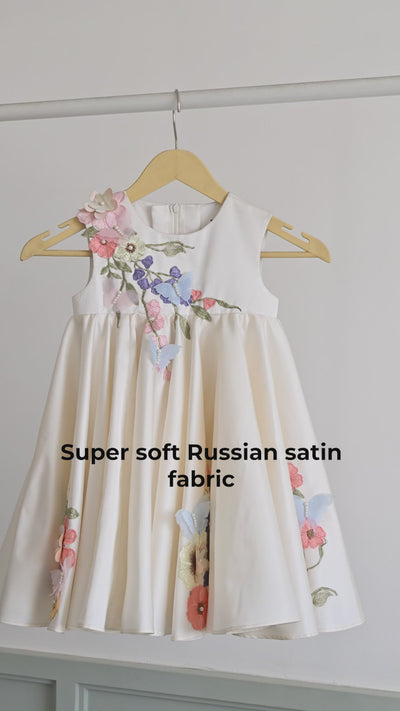 - Adorned with intricate 3D floral appliques in pastel hues for a delicate touch.